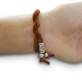 This bracelet is the perfect addition to your jewelry box. It can be worn on its own or stacked with other bracelets to match your unique style. A sterling silver Zymbol with soft brown deerskin will make this your new go-to. Plus, it's the easiest bracelet you'll ever put on. Follow the 3 steps below. Wrap cord more or less depending on your wrist size.